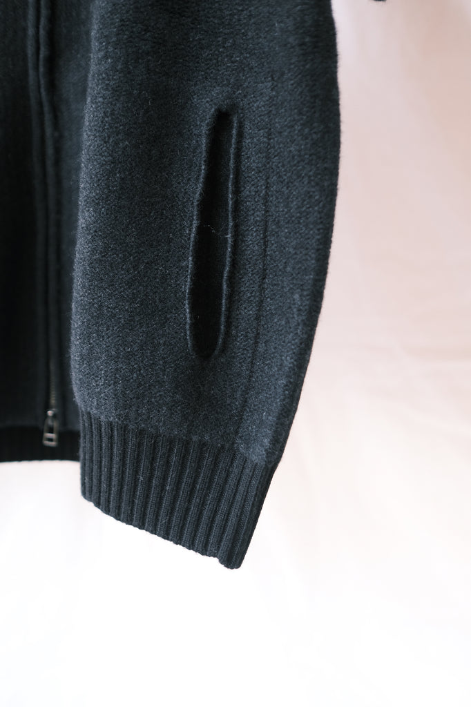 そしてニットならではの製法といえばポケットはまるで穴が空いたような見た目になっており、ポケット口を縫わずに形成出来るからこその見た目になっています。