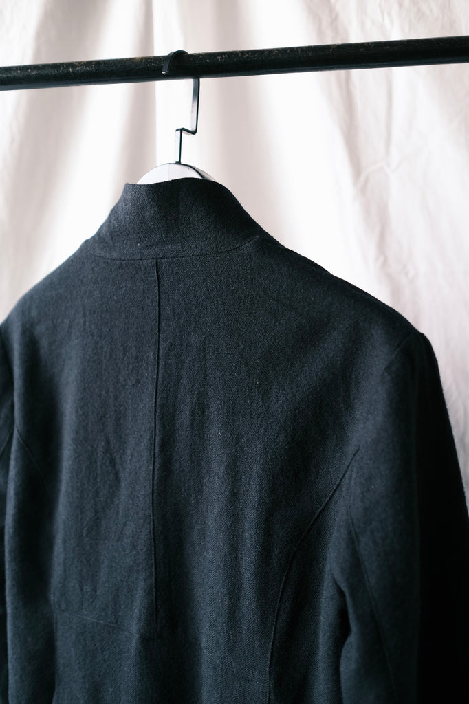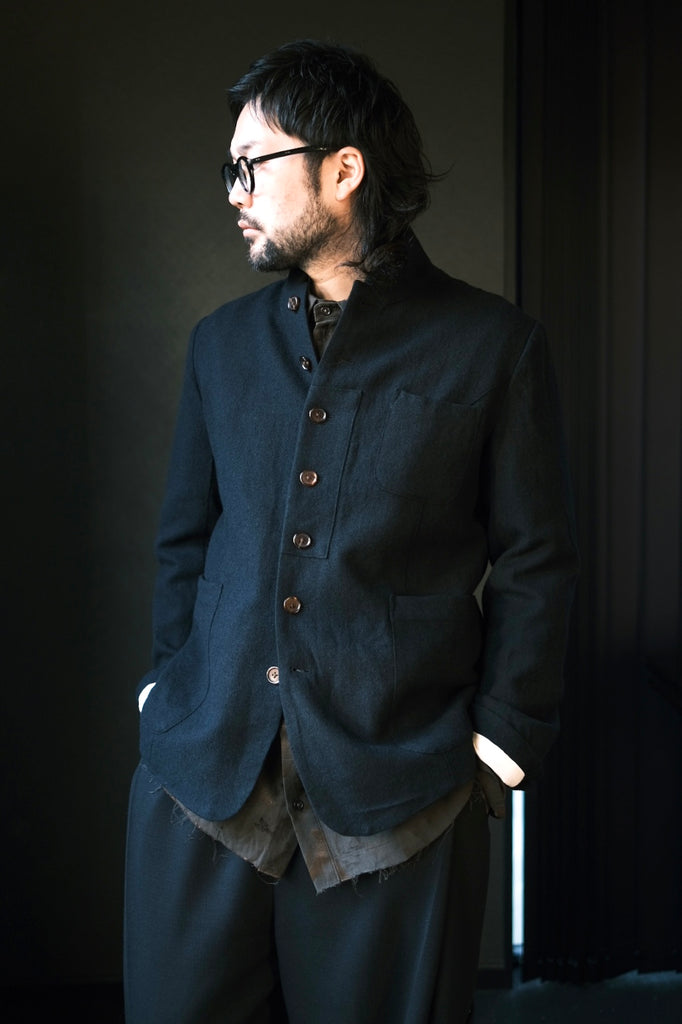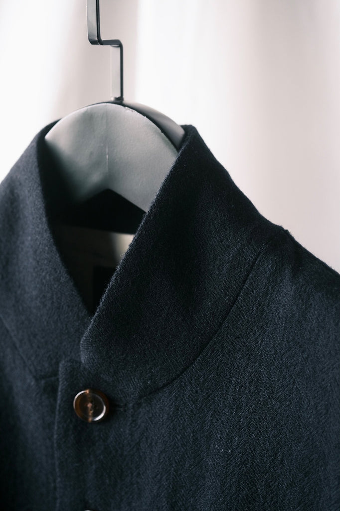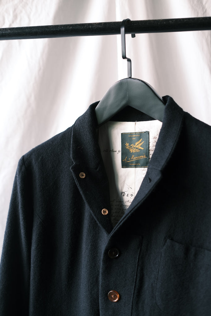 個人的にマナミスのジャケットと言えばこのラペルが作られているにも関わらずスタンドカラーになっている、ジャケットとブルゾンの合いの子のようなデザインがとても好きです。