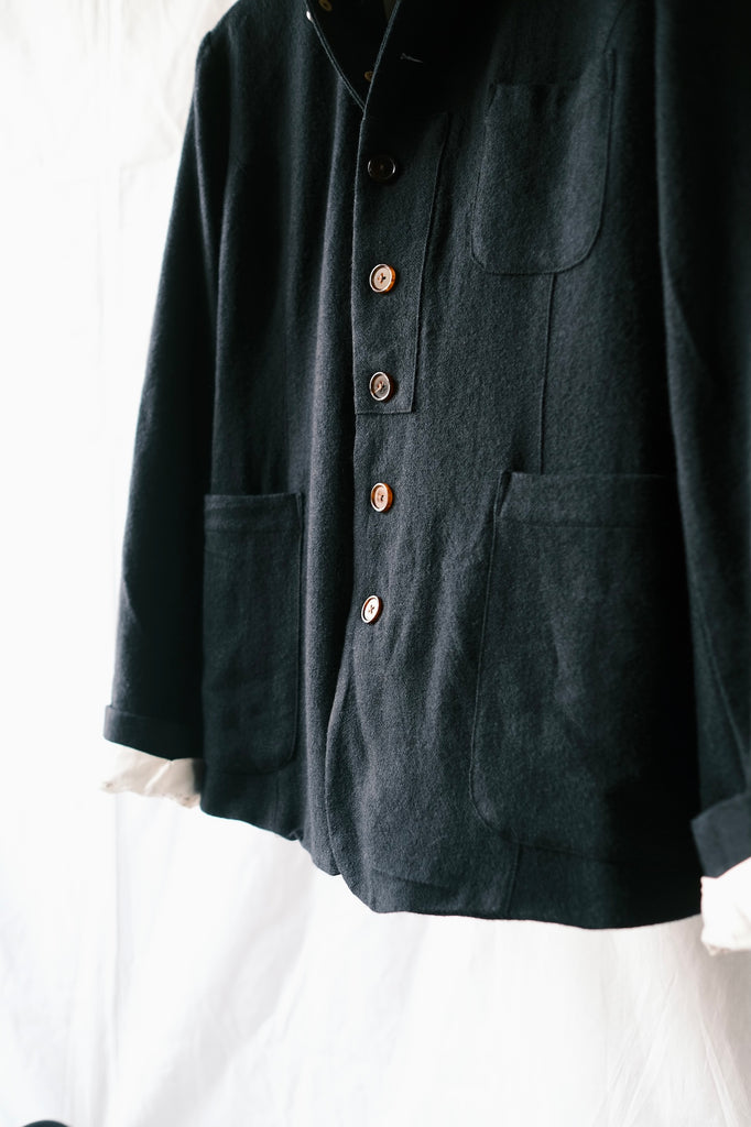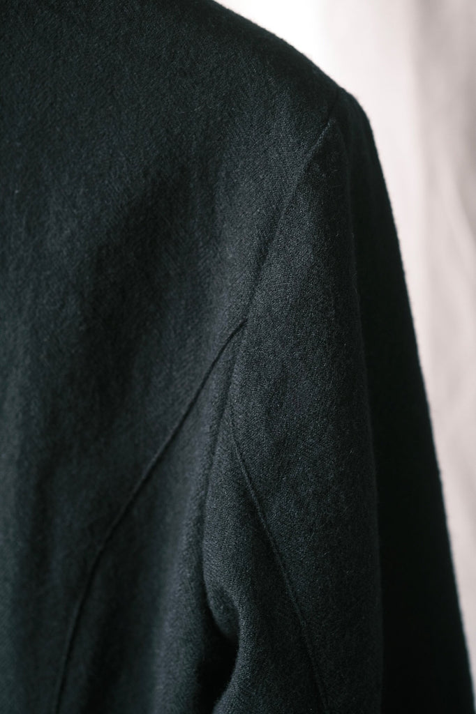 実は元々はベルベットで出されていたジャケットをこちらのウールヘリンボーンの生地に載せ替えてオーダーしている当店のみ(多分)のモデルになります。