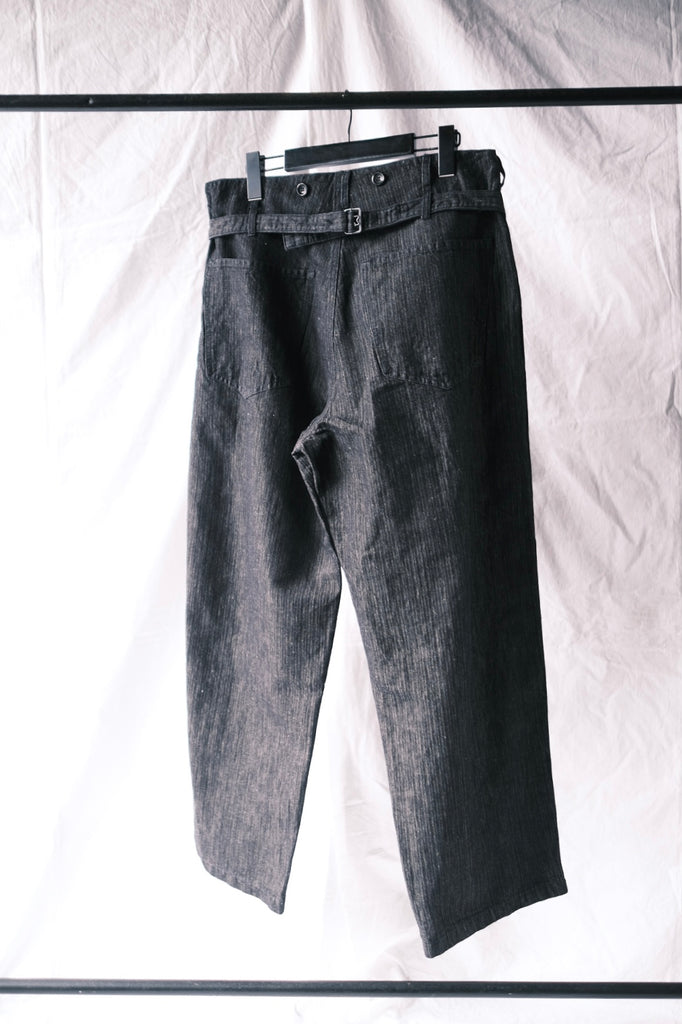 サスペンダーのない時代からベルトを使い始めるころの過渡期のパンツデザイン。