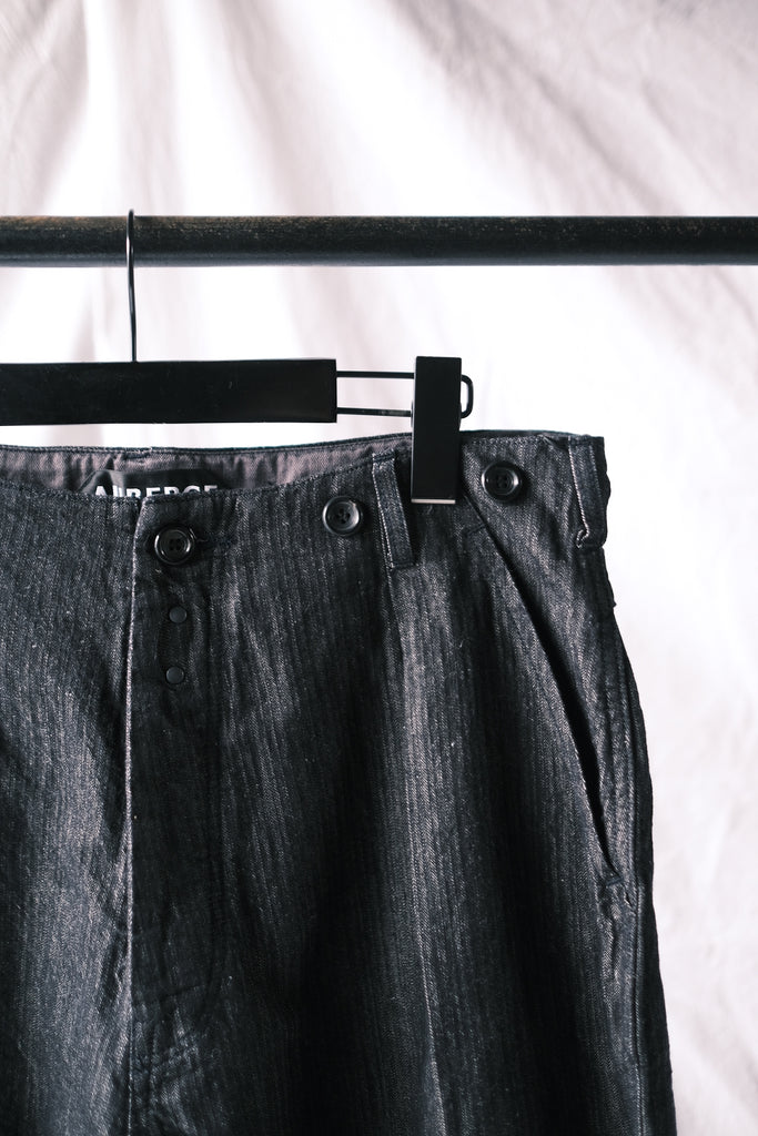 フレンチワークの典型的なデザイン、ディテールを持ったテーパードパンツ。