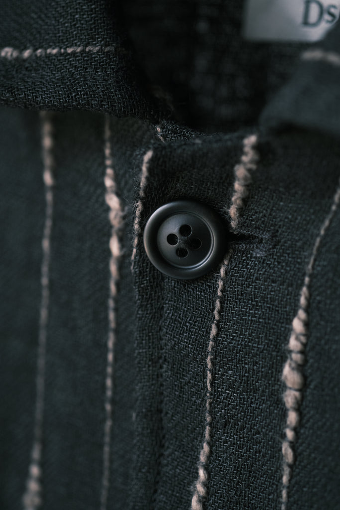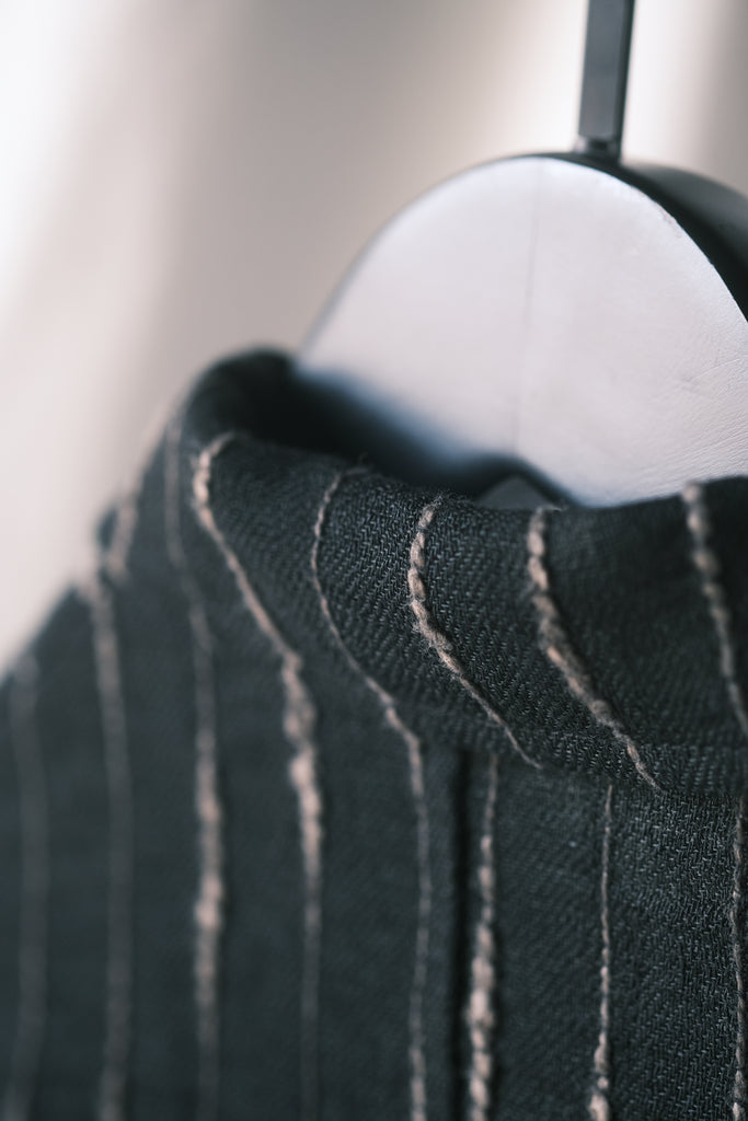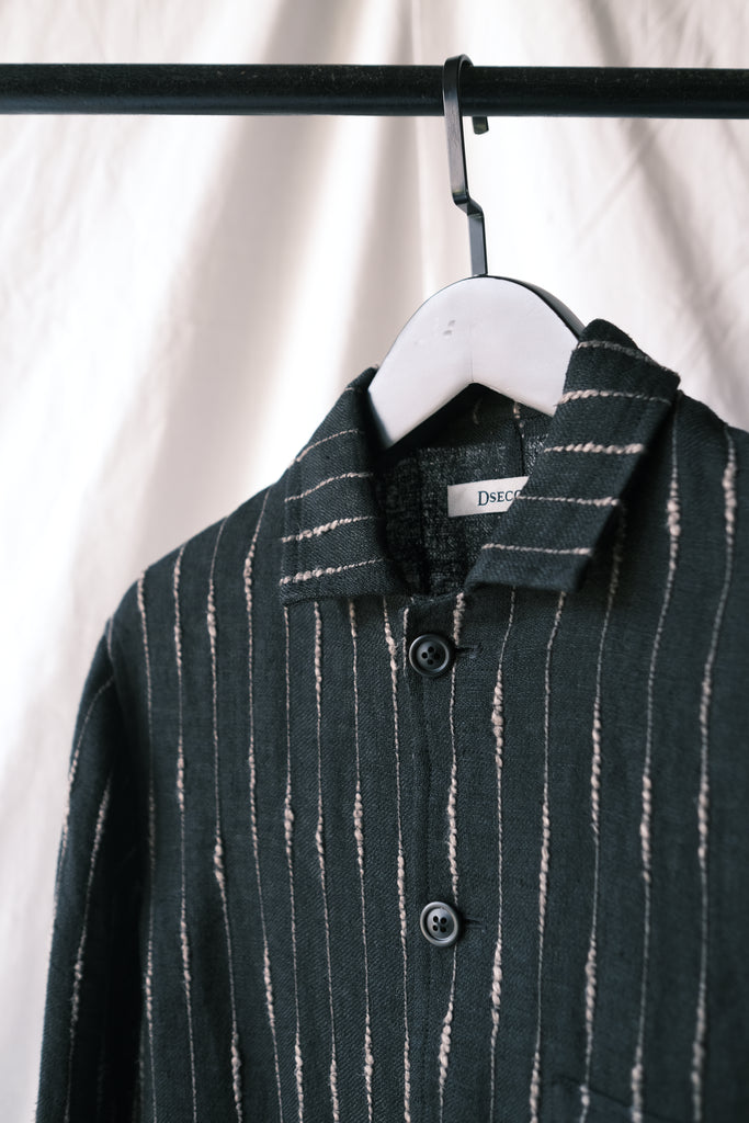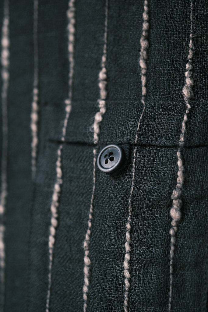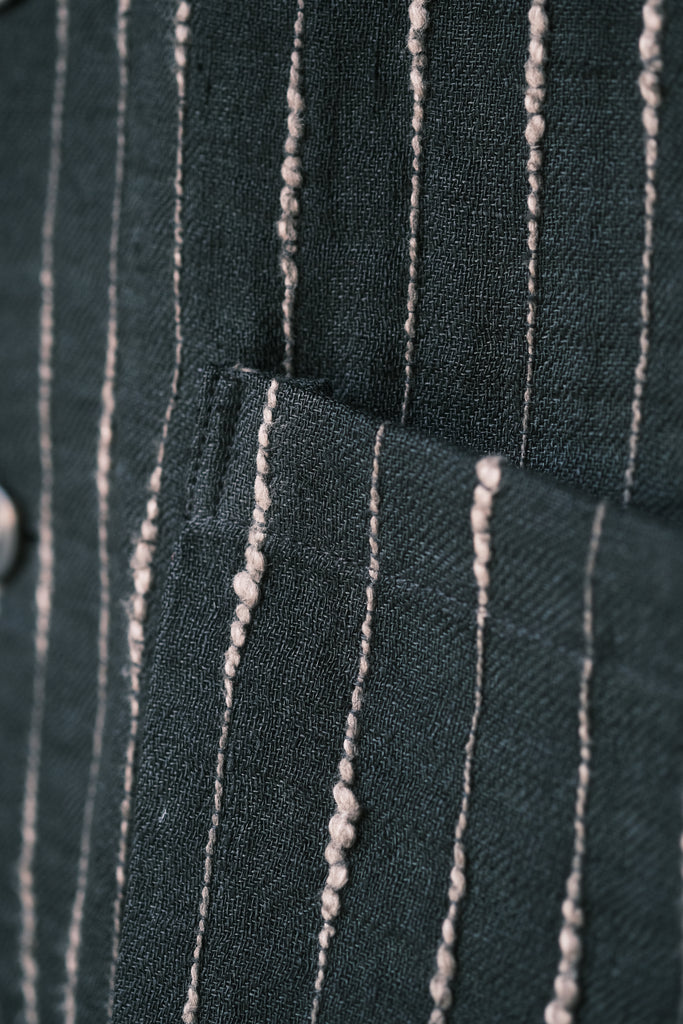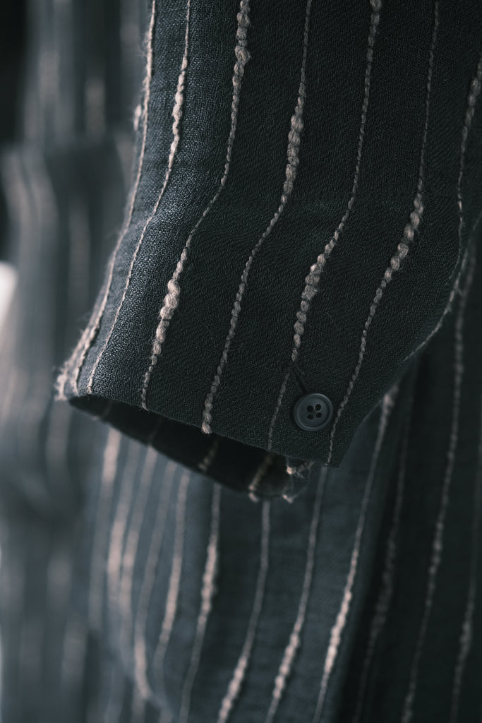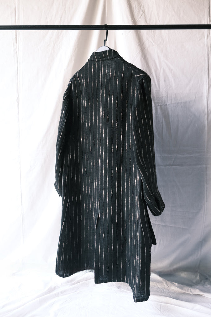 このリネンストライプシリーズではパンツ以外は当店のみのオーダー、このコートに関しては1枚のみの入荷なので世界に1枚限定ということになります。