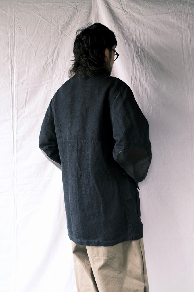 ポケット縁、襟裏、カフス裏、エルボーパッチにはウォッシャブルの牛革が使われており、Super140's&ヘンプの生地とともに経年変化していったら素晴らしい雰囲気になるのではないでしょうか。