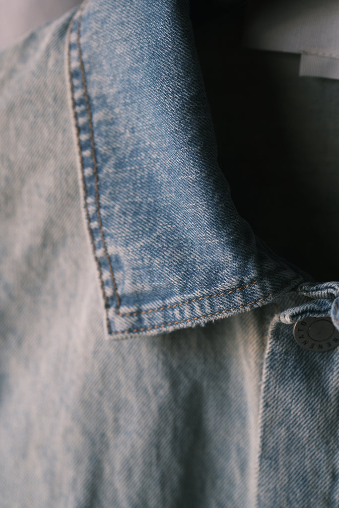 しかも加工も施されているからか生地がとても柔らかく着用時に肩に乗っかるような、そんな軽い着心地もデニムジャケットでは珍しいかなと思います。