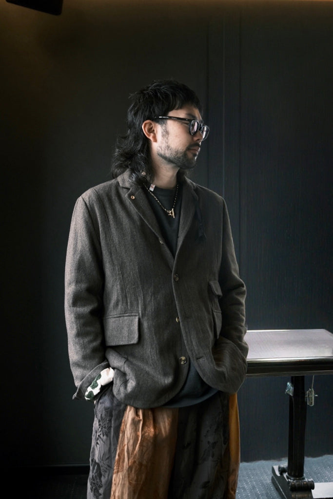 襟を作ってシンプルにジャケットとして着てもしっかり雰囲気があるのが素晴らしい。