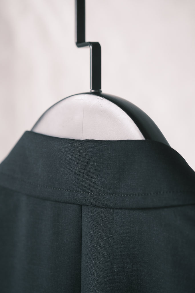 super 130'sの超極細ウール原料を贅沢に使用したウールトロピカル。ウール本来の吸放湿性やストレッチ性に加え、スーパー原料による糸本来の滑らかな質感と独特な落ち感が特徴。ウォッシャブル加工に加え、米胚芽油由来の成分を使用した特殊柔軟加工を施し、しっとりと滑らかな風合いを付与して仕上げています。
