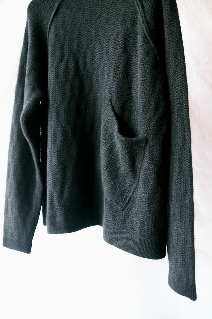 そして左見頃のウエスト部分にはアウトポケットが付けられておりニットでは珍しいデザインに。