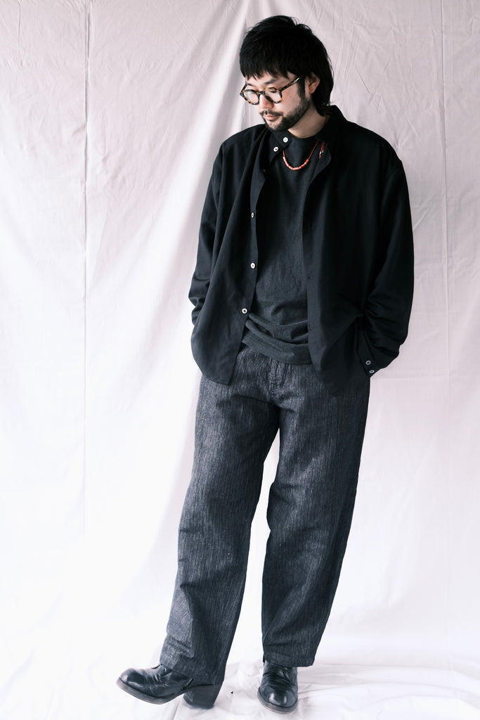 春夏に向けての作品ということもありモダールの特性を活かしドライタッチで水洗いも出来るという違いもあり、AWと同じC.L. Shirtですが機能的な部分やシルエットが全く別物になっていると感じます。