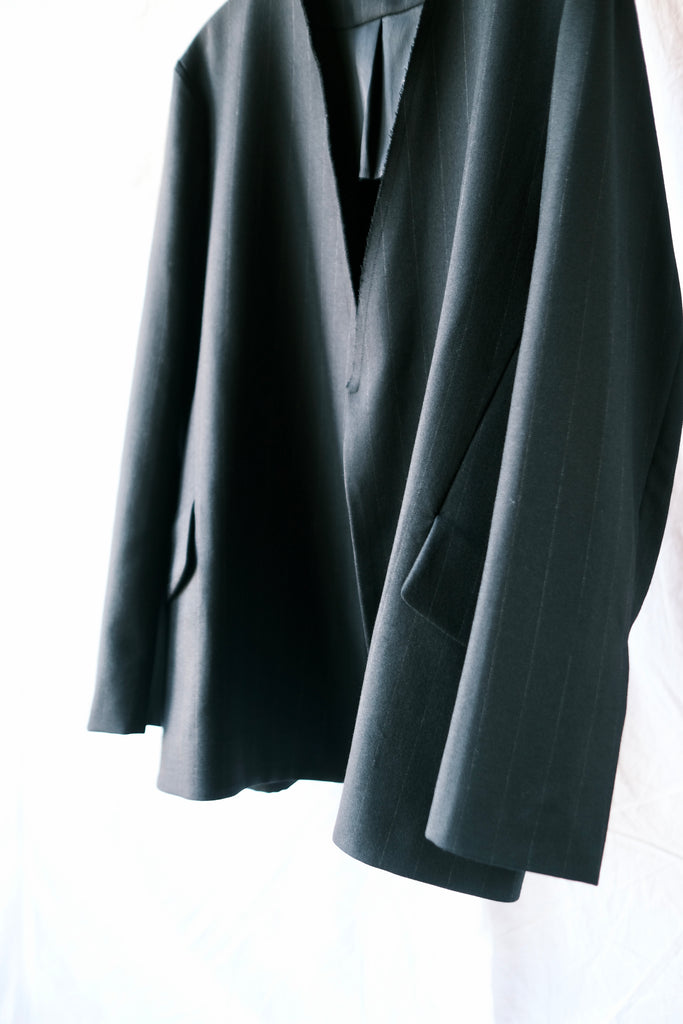 このジャケット(セットアップパンツも含め)も袖を通すとそんな大胆さやダイナミックさを感じる1着になっております。