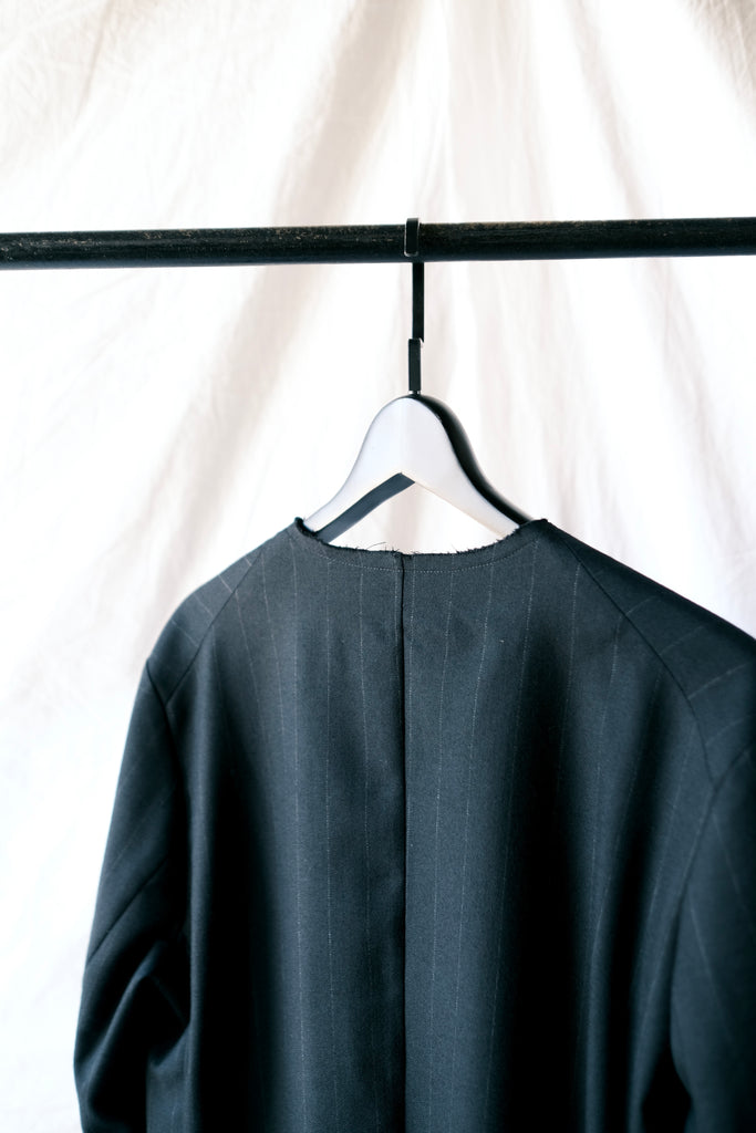 着た時に作用する仕様が非常に多く、「セットアップで着れば綺麗目な空気になる」という安直なモノではなく、奥に潜むモードな部分、尖った部分が込められているような気がします。