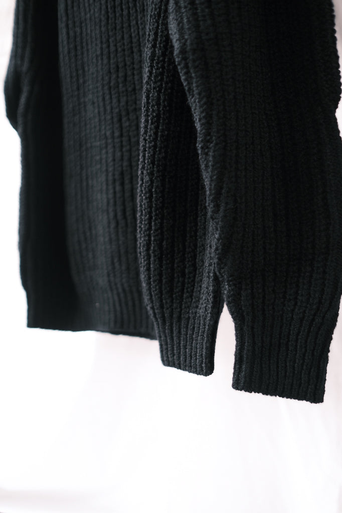 肩は落ち袖幅は太め、しかしリブが切り替えられておらず編み続けられているので変に溜まりが出来ないのが不思議ポイント。