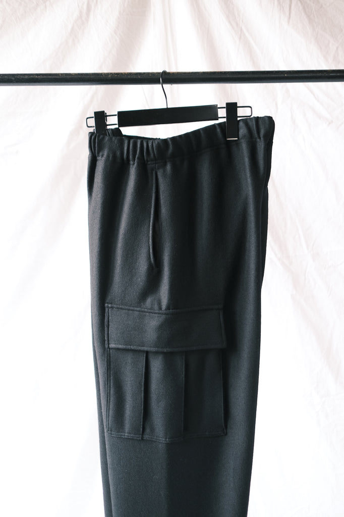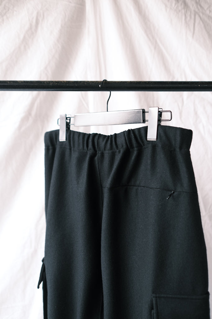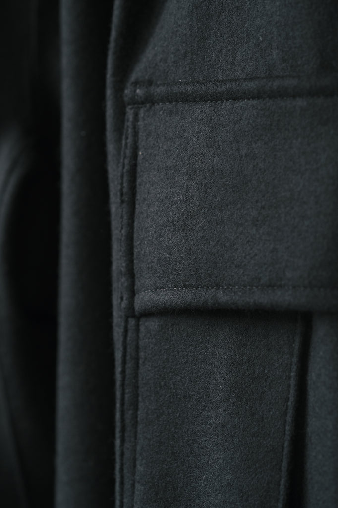 そして上記のことから足を通した時の肌触りやリラックスして穿けるウエストや股ぐりの仕様。何より大事な見た目といった部分もウールの質感が巧く演出してくれてレザーやジャケットにも合わせたくなる1枚です。