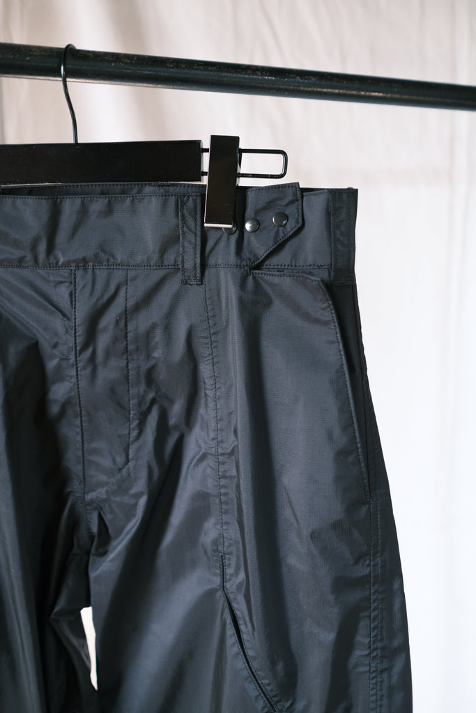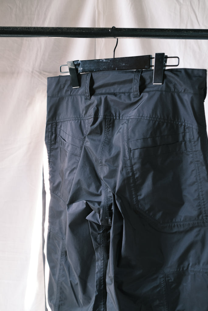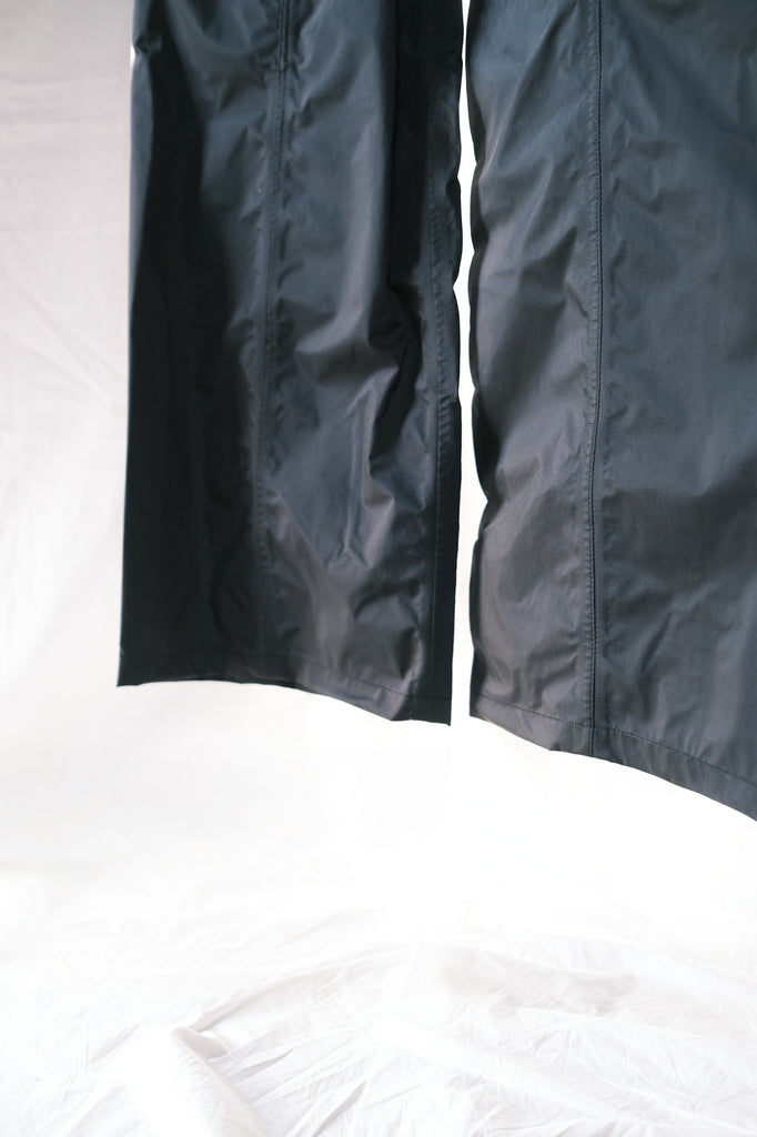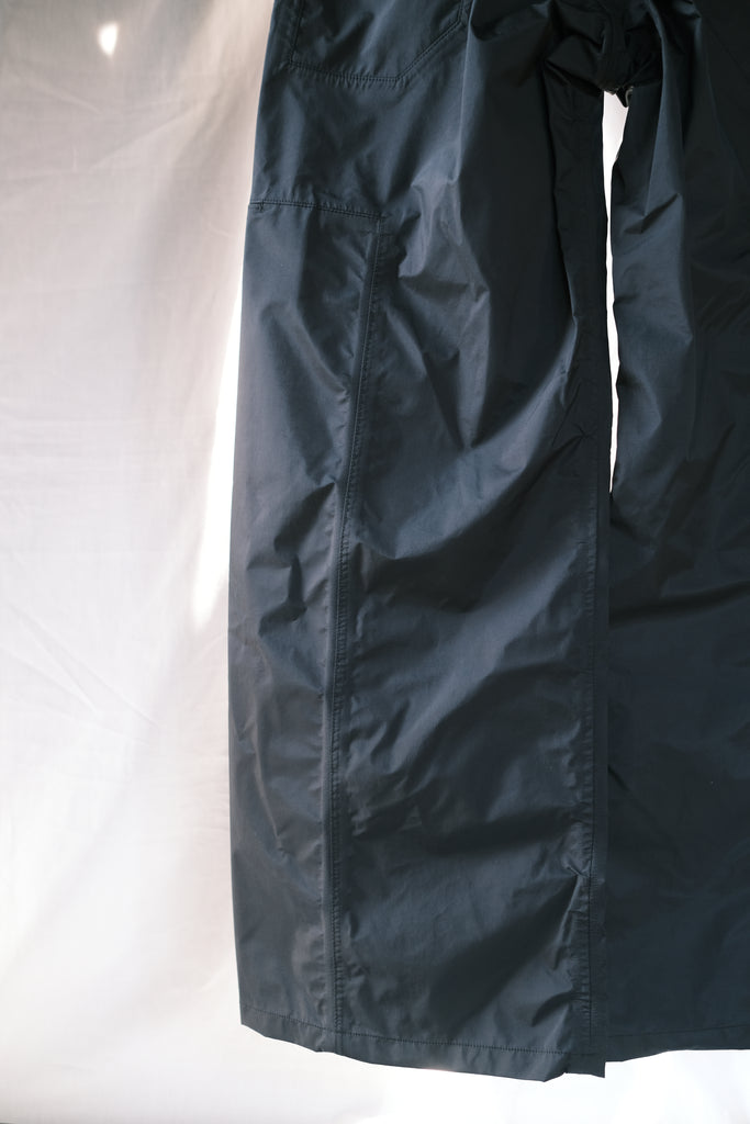 3レイヤーの透湿防水素材を使用したセミワイドほどのシルエットのパンツ。