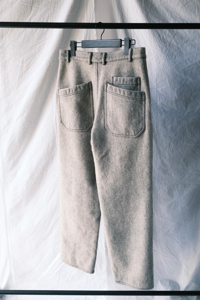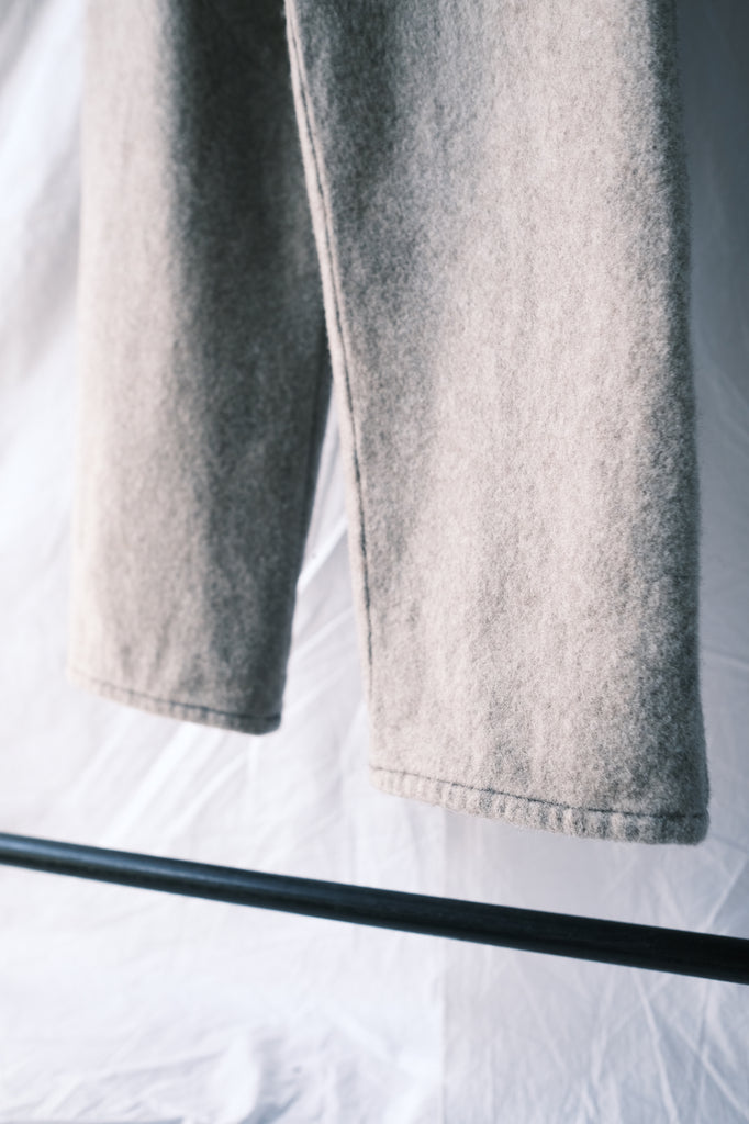 それがまたモードで合わせやすく、先ほど言った岩のような表情に繋がっていて迫力があり、決して綺麗なスラックスでは出せない存在感がこのパンツにはあります。
