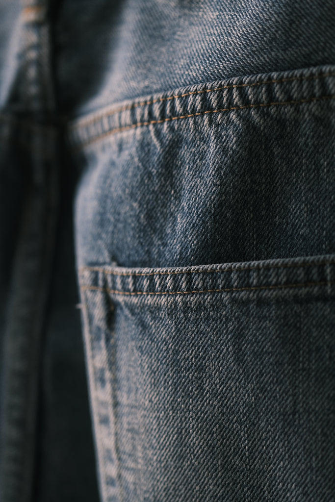 そこに膨らみのあるデニムを落とし込むことで腰回り、お尻まわり、股間まわりのタイトさを除去。