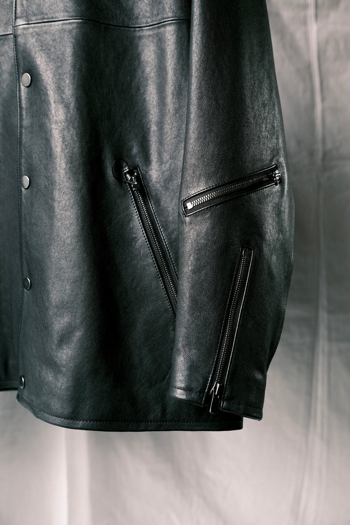 まず通常のライダースと違いフロントはスナップボタンで裾はフラットになっておりコーチジャケットの片鱗を感じます。