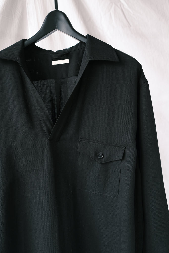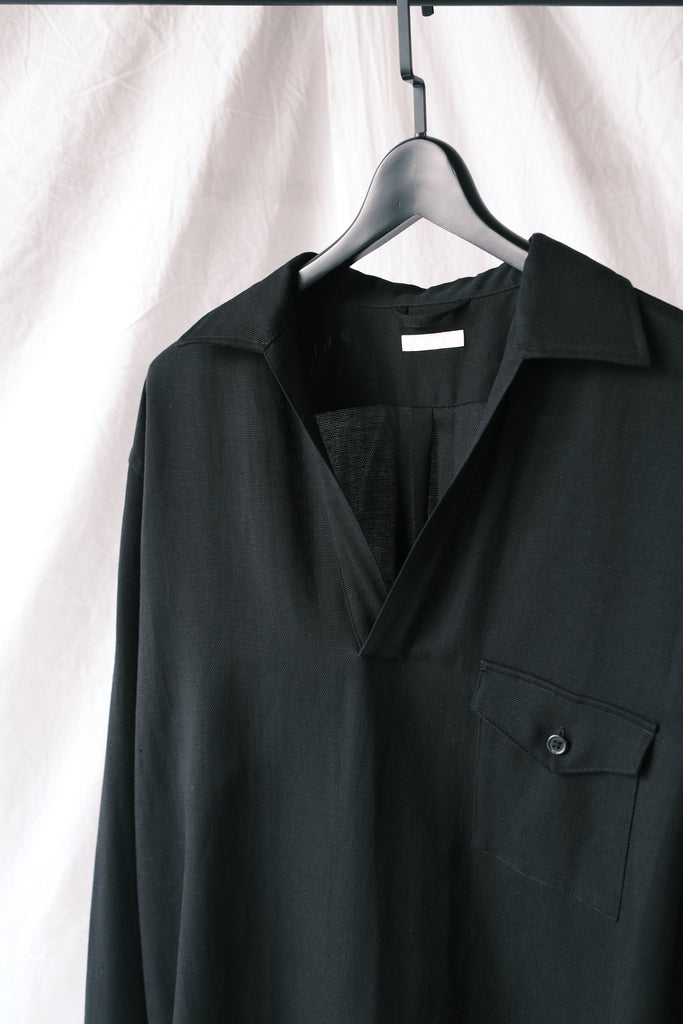 空気を孕んだようなゆったりとした分量感は袖通しも良く、洗い晒しで着こなしたい心地の良い一枚。