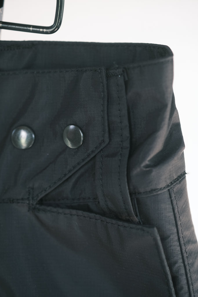 3レイヤーの透湿防水素材を使いながらも膝上丈で生地のハリによって丁度良く膨らみが生まれ穿き易いシルエットになっています。