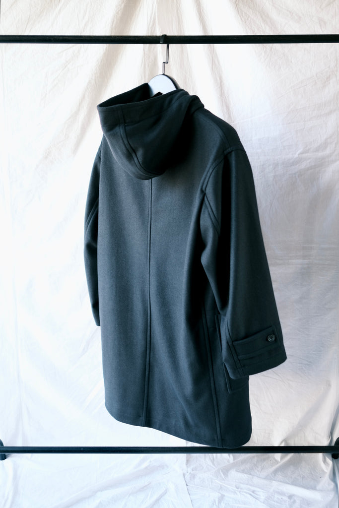 CHAMBRAY SOFT MELTON DUFFLE COAT / Black Navy - is backordered and will ship as soon as it is back in stock.